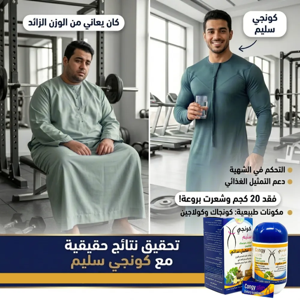 "أنا رجل أعمال ومشغول دائماً، ما عندي وقت لريجيم صعب. Congy Slim حل كل مشاكلي – طاقة عالية الصبح، شهية أقل، وجسم بدأ يتغير. نزلت 8 كيلو في شهر ونص بدون ما أتعب نفسي. شكراً جزيلاً!"